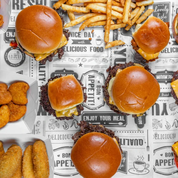 This interactive “Build Your Own Burger” catering package allows guests to customize their burgers with fresh ingredients and sides, making it ideal for events where variety and personalization matter. The package includes 25 freshly grilled beef patties (topped with cheddar cheese, grilled onions, pickles, and smash sauce), 2 large trays of fries, 2 large sides…